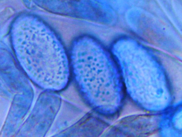 Patrně nejhojnější kosmatka s krátkými chloupky rostoucí spíše v teplejších měsících ze země či dřeva na vlhkých místech, často kolem potoků. Určení je možné pouze za pomocí mikroskopických znaků. Spory elipsoidní až široce elipsoidní o velikosti 19-26,5 x 13,5-16,5 μm (Q = 1,45 až 1,75) s nízkými izolovanými bradavkami, které se někdy mohou krátce propojovat a krátkými chloupky o délce 50 až 450 μm. Jedná se však o nedořešený komplex více druhů.