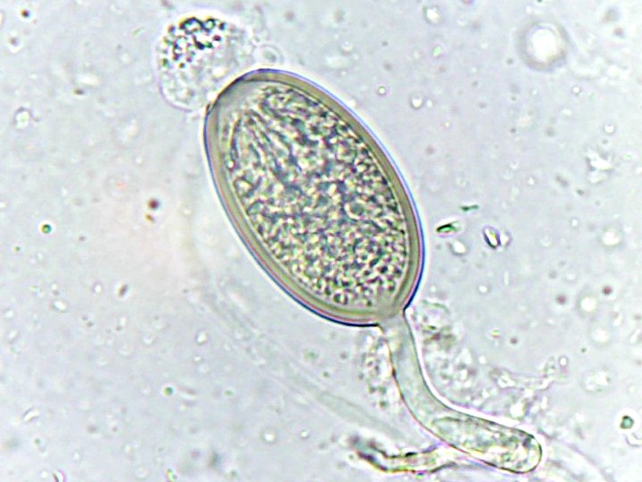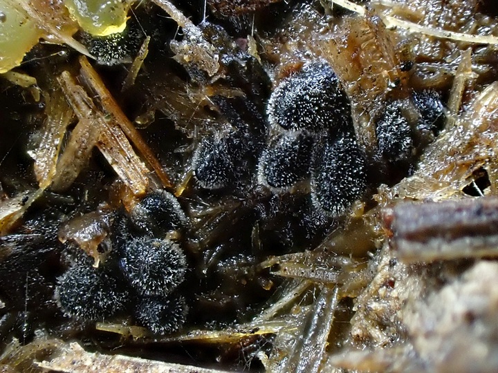 Velmi drobná koprofilní houba rostoucí nahloučeně na trusu býložravců. Rozšíření není známé, nejspíš se však jedná o přehlížený druh. Vřecka po osmi výtrusech. Výtrusy o velikosti cca 48-60 x 27-31 µm s typickým "přívěskem" na spodní straně s délkou 36-44 x 7-8,5 µm.
