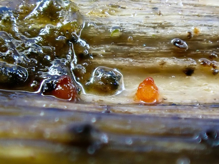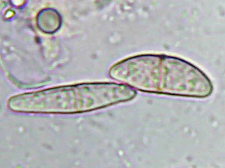Velmi drobný druh rážovky z rodu Macroconia rostoucí na starých lodyhách dvouděložných rostlin (zejména kopřivy) ve společnosti pyrenomycetů rodu Leptosphaeria, na nichž pravděpodobně parazitují. V rámci rodu se rozlišují dva makroskopicky podobné druhy, které lze bezpečně určit pouze na základě mikroskopických znaků. Tento druh je charakteristický většími elipsoidními výtrusy o velikosti